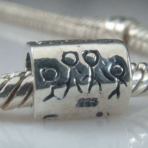 Genuine solid sterling silver slide on charm bead - fits most popular bracelets like Pandora, Troll and Chamilia as well as most of the generic slide on, slide off charm bracelets being sold (they however DO NOT fit on a Lovelinks or Truth bracelet, sorry!). Please note, only one bead pictured is supplied - it is shown on a bracelet to provide an idea of size and dimension against the thickness of the bracelet. On some of these beads, the writing on one side is not perfect (the slash on the F is faded) and some of the family groups have faded legs - it looks as if at some corners the stamp that made the design hasn't been pressed down hard enough or the corner has been polished too much and the design isn't as deep as it should be. The price has been reduced to reflect this, and we don't think it's TOO noticable.