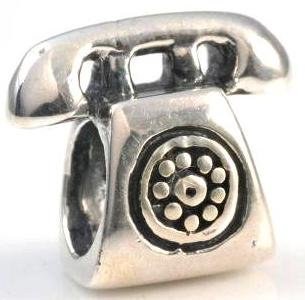 Sterling Silver Retro Telephone Bead (Suitable for Standard Size European Bracelets) 9mm x 11mm with 4.5mm Hole - Supplied in Gift Bag
