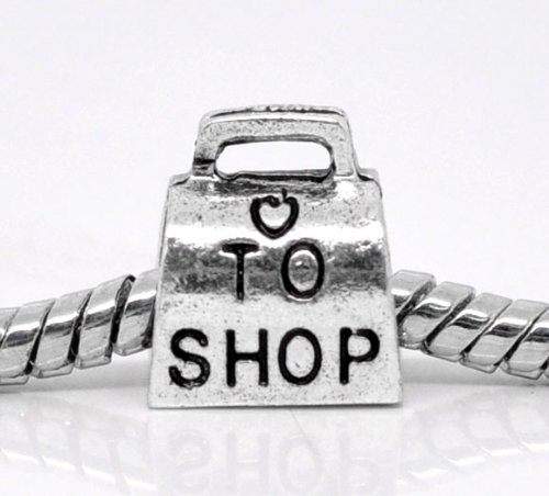 Stylish "Love to Shop" Charm Bead by Divine Beads © Simply Slides on Slides Off Your Bracelets and necklaces. Fits Pandora, Biagi, Tedora, Chamilia, Bacio, Troll and other European style charms & beads bracelets. Free gift and Post & Packing with all Divine Beads purchases over £10