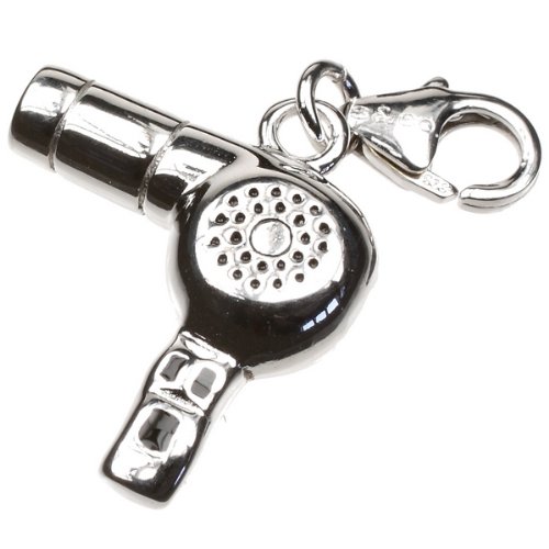Silver Charm Hairdryer Clip On. Give yourself a blow dry with this fabulous hairdryer in sterling Silver. This quaint Silver Charm will remind you of all those girly nights getting ready to go out - make this your finest hairstyle and buy this Silver Hairdryer Charm for your Bracelet.