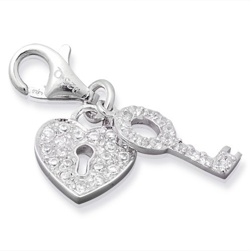 925 Colina Sterling Silver Key Lock Charm with carabiner clasp for charm bracelets CH0071