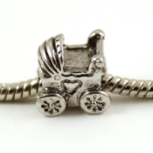 A silver plated pram bead, to fit Pandora and other similar bracelets. The hole is screw threaded.