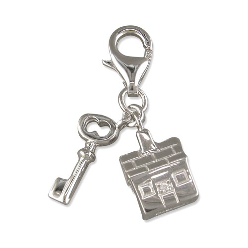 Sterling silver hallmarked 925. Silver house and key clip on charm with cubic zirconia in the centre of the house. Prefect for a sweetie bracelet or your favourite chain. Charm measures 10mm in length. Presented in a velvet pouch.