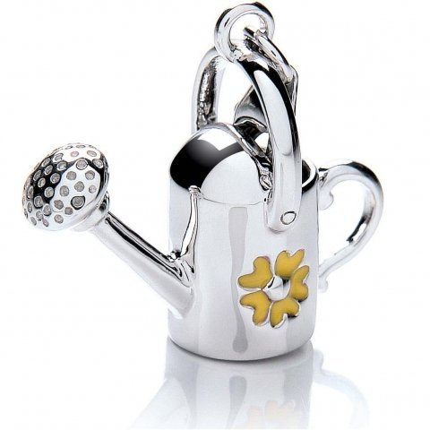 This Royal London Links charm is a beautifully crafted silver watering can featuring a painted yellow flower and made from rhodium plated silver. This arrives with its own packaging.