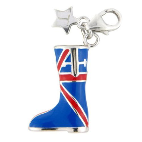 Tingle London Silver Union Jack Welly, Red, Blue & White Enamel. Theme- FashionAll Tingle charms have lobster catches so that they can be added to your bracelets and necklaces. They can easily be moved around and replaced or grouped with your favourite charm collection. Many contemporary jewellery items especially those made of white gold and sterling silver, are electroplated in rhodium to enhance shine and durability.Rhodium is a precious metal, a member of the platinum family. Rhodium electroplating is used to provide a surface that will resist scratches and tarnish, and give a white, reflective appearance for longer