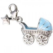 Sterling Silver Pram Charm, Blue Enamel.