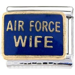 9mm stainless steel Italian Charm. Commemorate special occasions, capture memorable moments, or simply show off your personality by creating your own original Italian charm bracelet. High-quality Italian Charm. Blue AIR FORCE WIFE Italian Charm