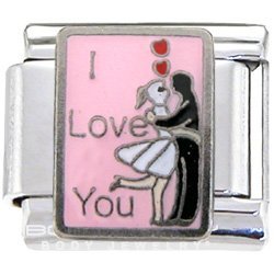 9mm stainless steel Italian Charm. Commemorate special occasions, capture memorable moments, or simply show off your personality by creating your own original Italian charm bracelet. High-quality Italian Charm. Couple Embraced I LOVE YOU Italian Charm