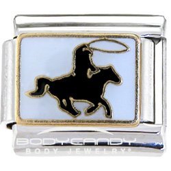 9mm stainless steel Italian Charm. Commemorate special occasions, capture memorable moments, or simply show off your personality by creating your own original Italian charm bracelet. High-quality Italian Charm. Cowboy & Lasso Italian Charm